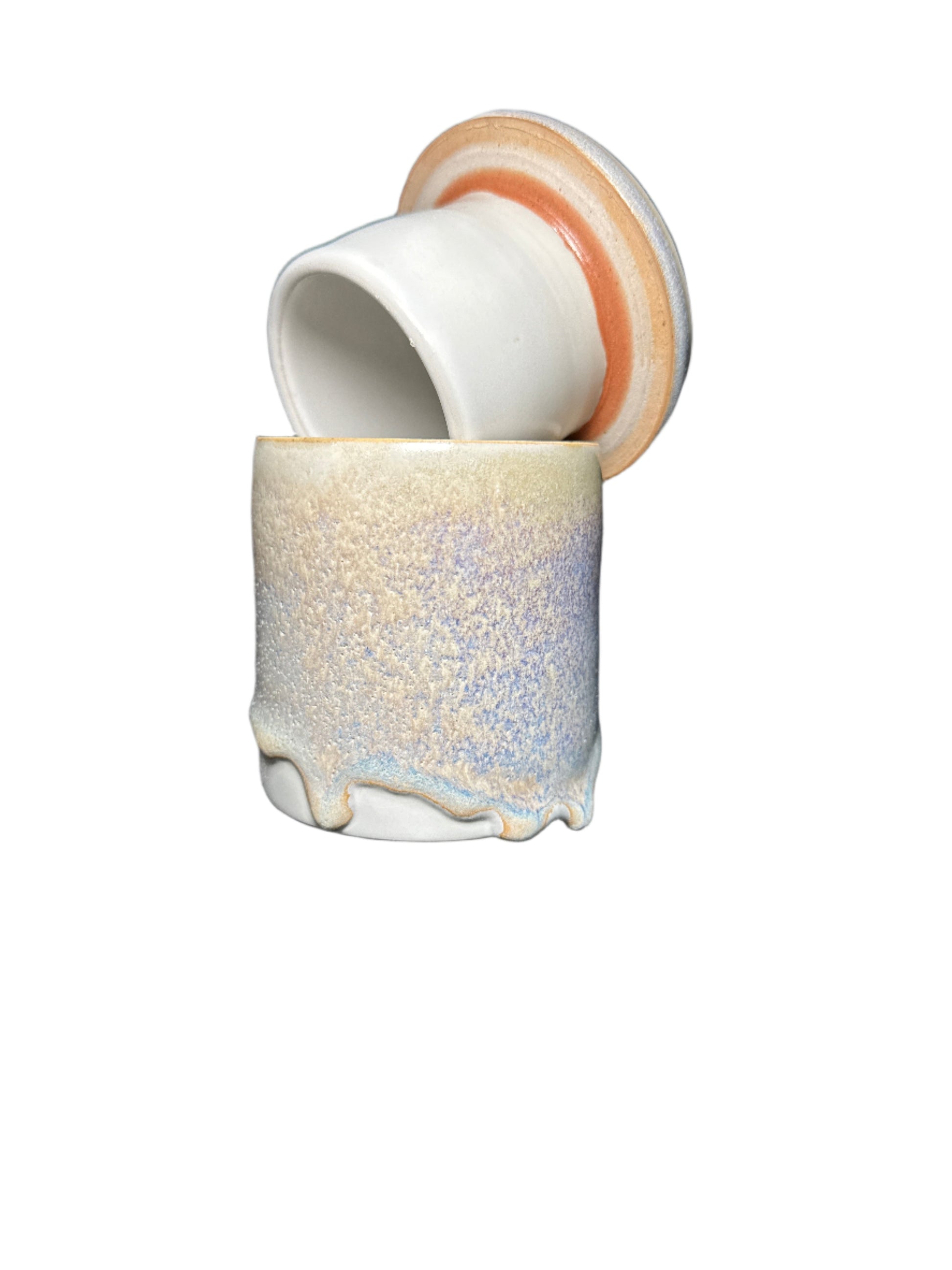 Keep your butter fresh and spreadable with this charming Butter Bell. Its creamy base color is playfully accented with soft pinks and blues, adding a whimsical touch to your kitchen. Perfect for those who appreciate a quirky yet practical way to store butter, this piece keeps your butter cool and ready to spread without refrigeration. A delightful blend of function and fun for your countertop.