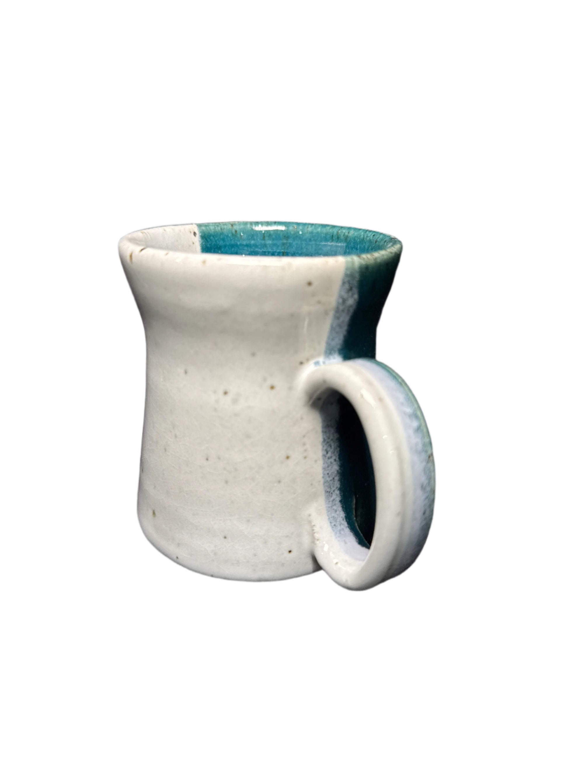 This Going Dutch Mug brings a playful twist to your coffee routine with its two-tone white and green design and a charming midcentury vibe. Perfect for those who appreciate a little retro flair while sipping their favorite brew. Add a splash of color and character to your mornings with this quirky, stylish mug.
