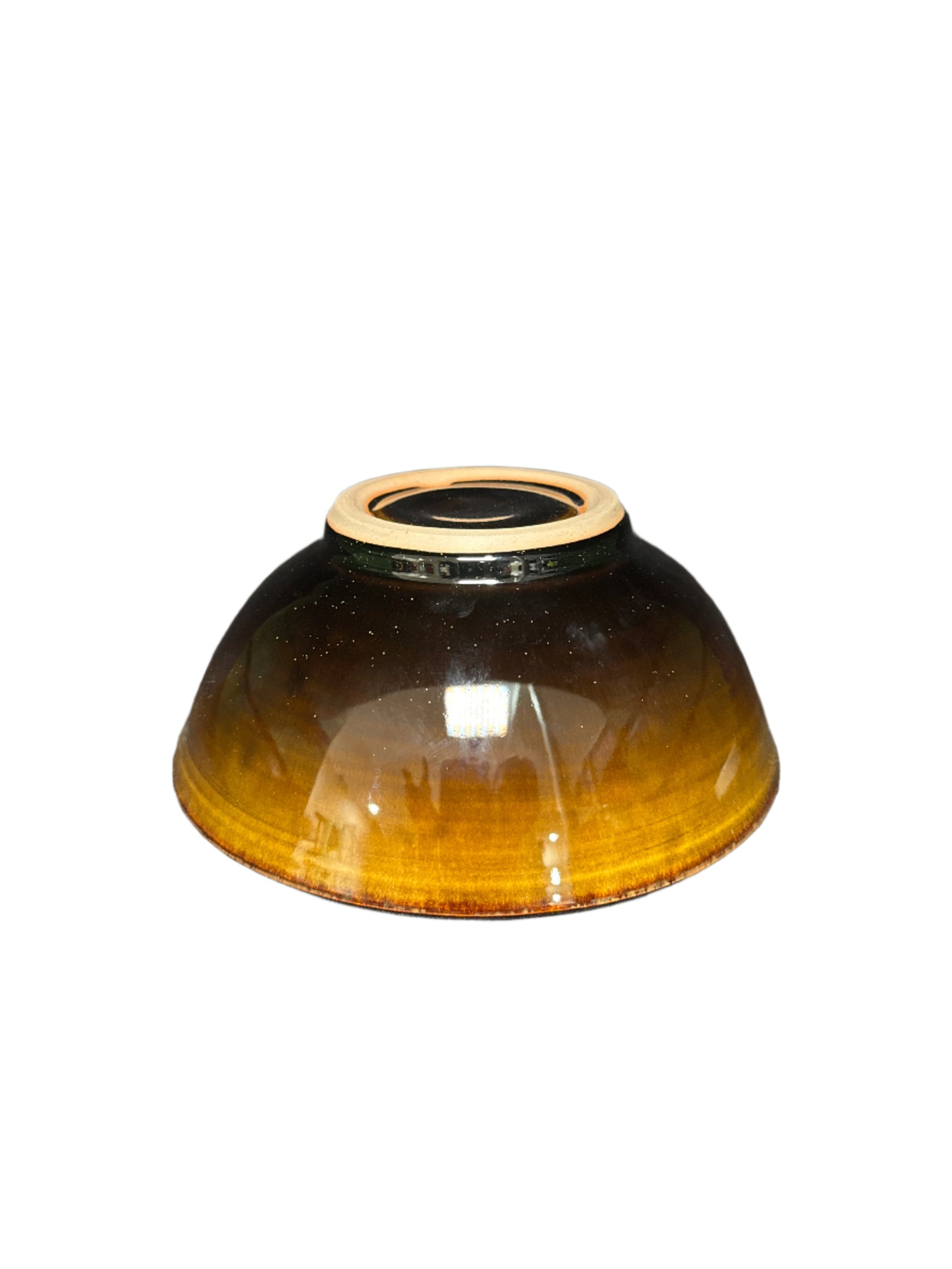 This bowl is a little too grand for cereal but just right for a modest serving dish or a quiet moment of contemplation. Its glossy golden brown exterior cradles a mesmerizing pool of ethereal blues and violets inside, making it as much a piece of art as a vessel. A favorite that’s hard to part with, it invites you to discover the multitudes it holds within. 3.25"x8"